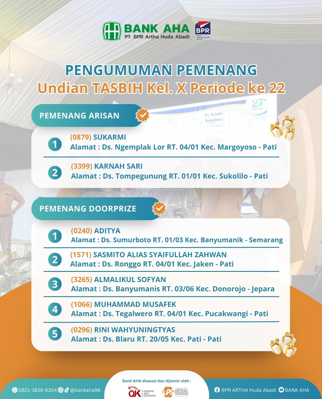 Pada hari ini, 22 Mei 2024 bertempat di Semarang. BPR Artha Huda...