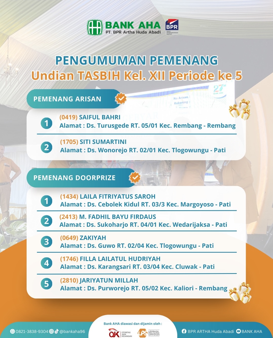 Berikut kami umumkan pemenang undian tasbih kelompok XII peri...